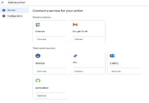 你的 Agent 可连接至多种服务,包括 Calendar、Google Mail、Workaday、Jira、Outlook 和 Service Now(见图 2)。