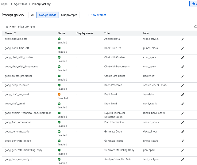 随后,Agent 可使用自有提示词,从 Google 提供的预制提示词库中选取,如图 3 所示。