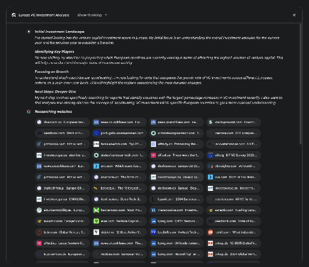 - Google Deep Research 是一个代表我们分析使用 Google 搜索作为工具获得的来源的 Agent。它反思、规划并执行。